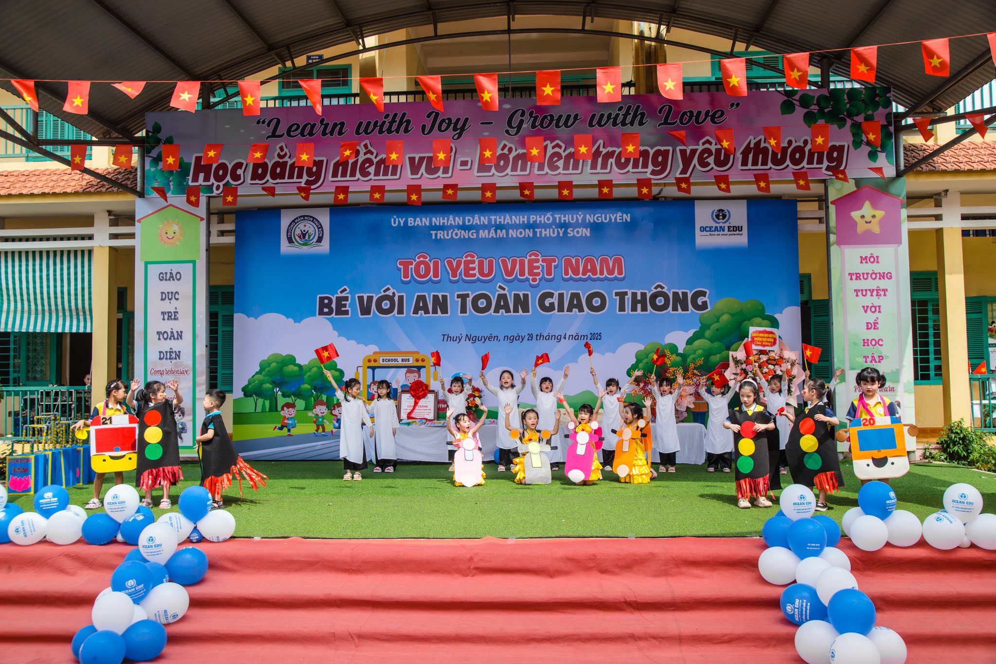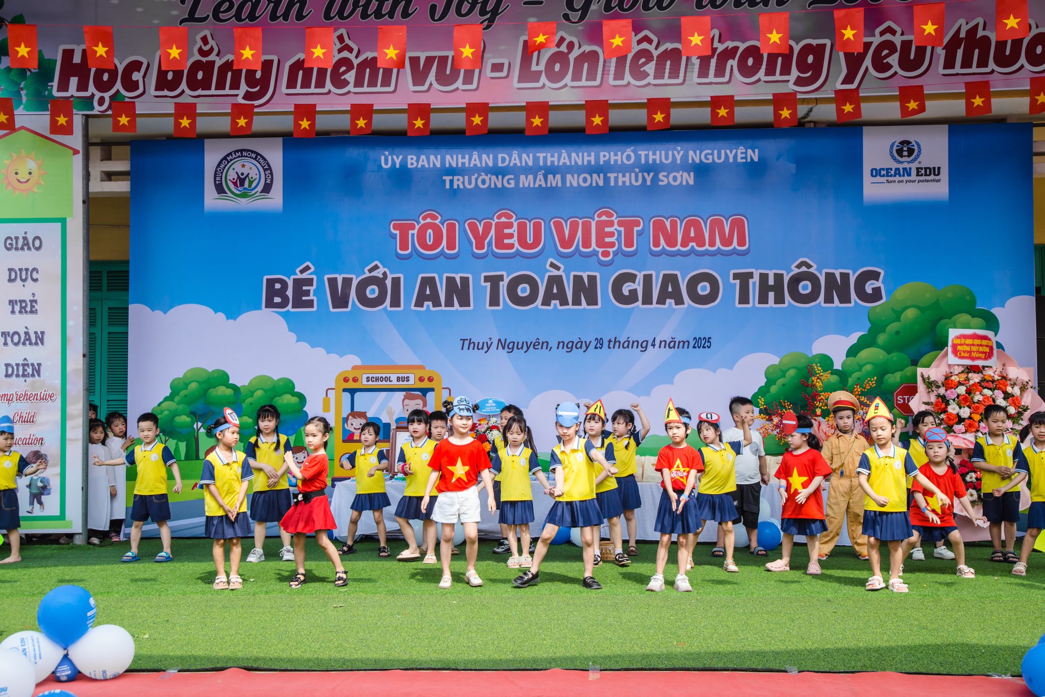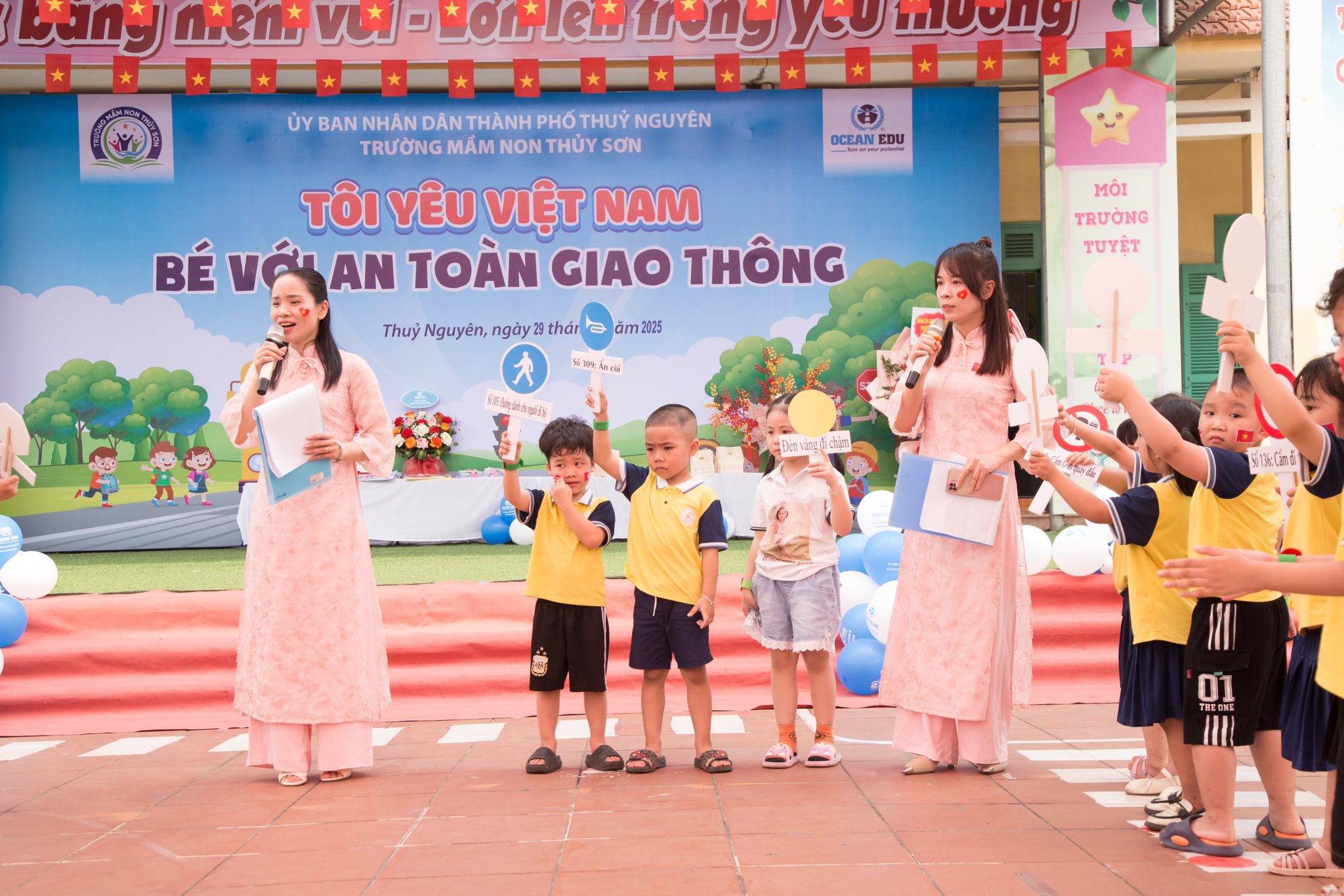 Hòa trong không khí thiêng liêng kỷ niệm 50 năm Ngày Giải phóng miền Nam, thống nhất đất nước (30/4/1975 – 30/4/2025), trường mầm non Thuỷ Sơn hân hoan tổ chức sân chơi bổ ích mang tên “Tôi yêu Việt Nam – Bé với an toàn giao thông” dành cho các bé thân yêu.