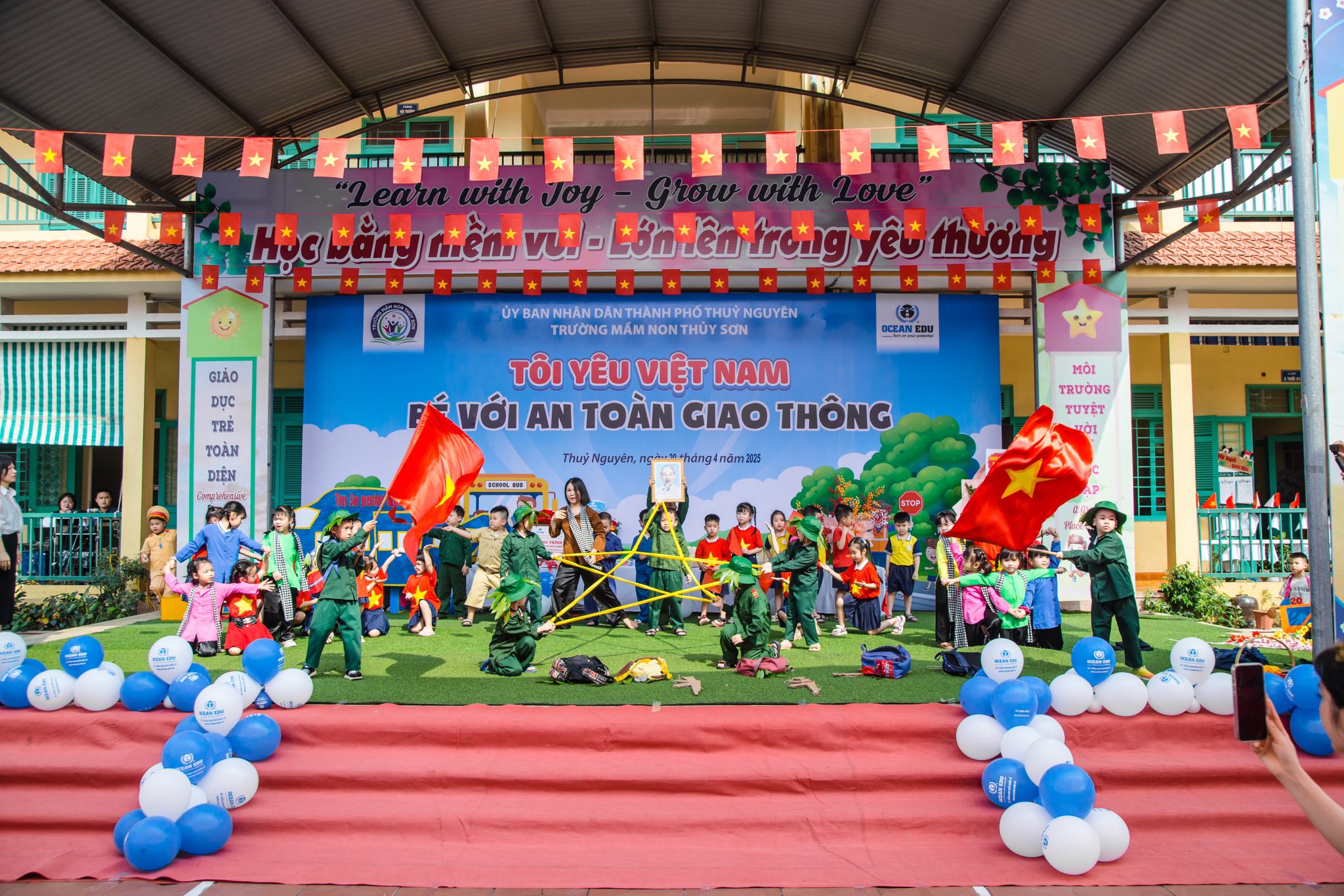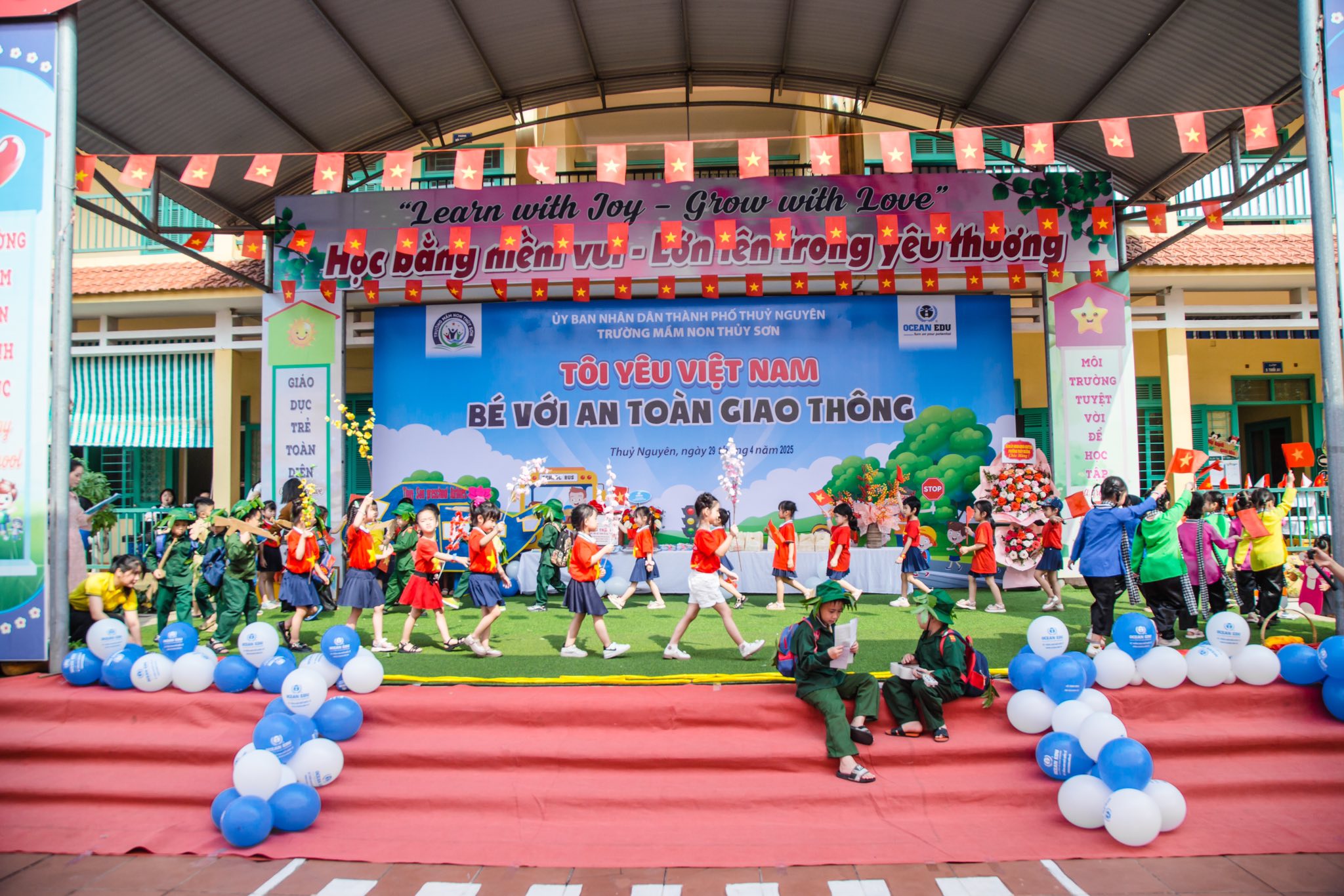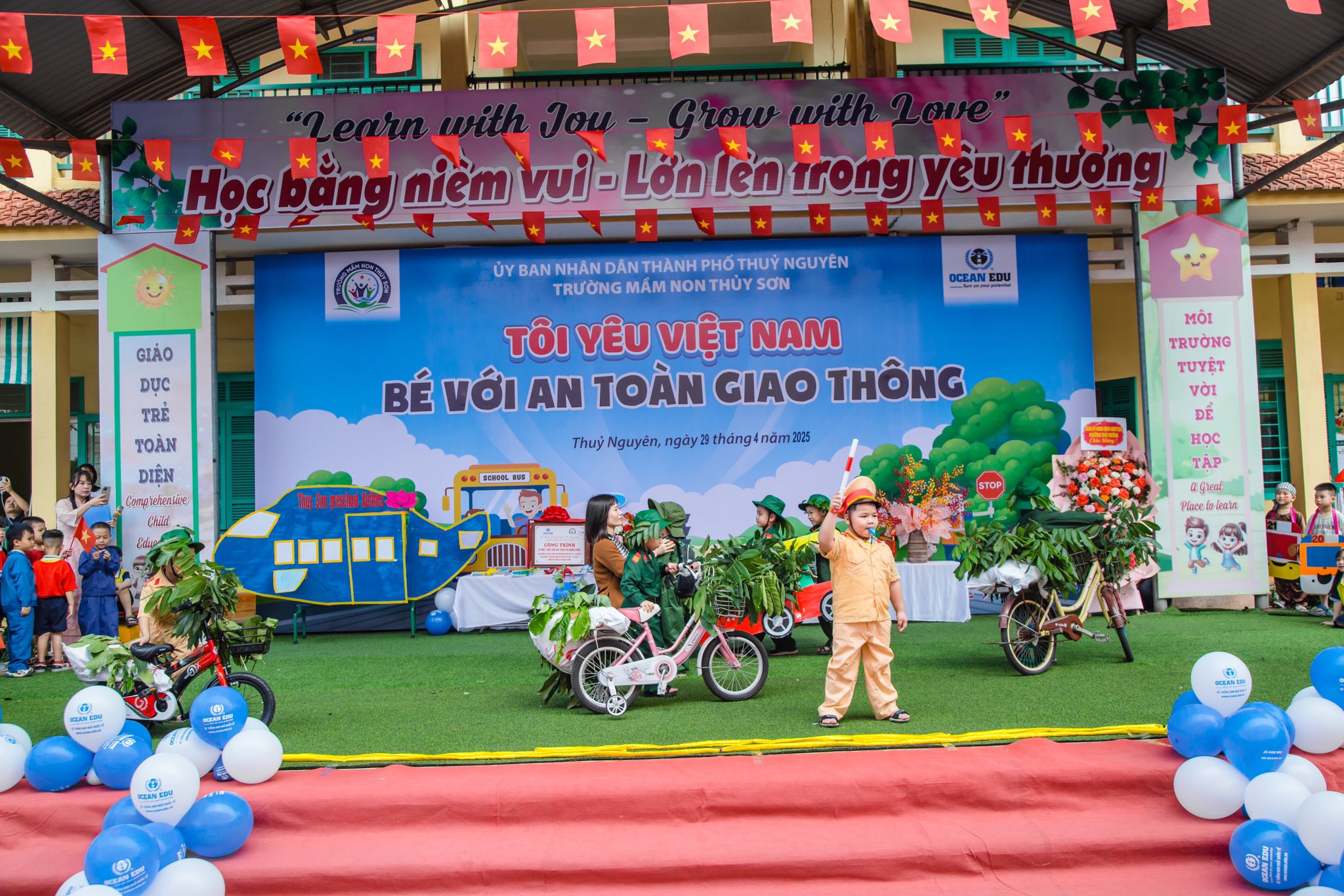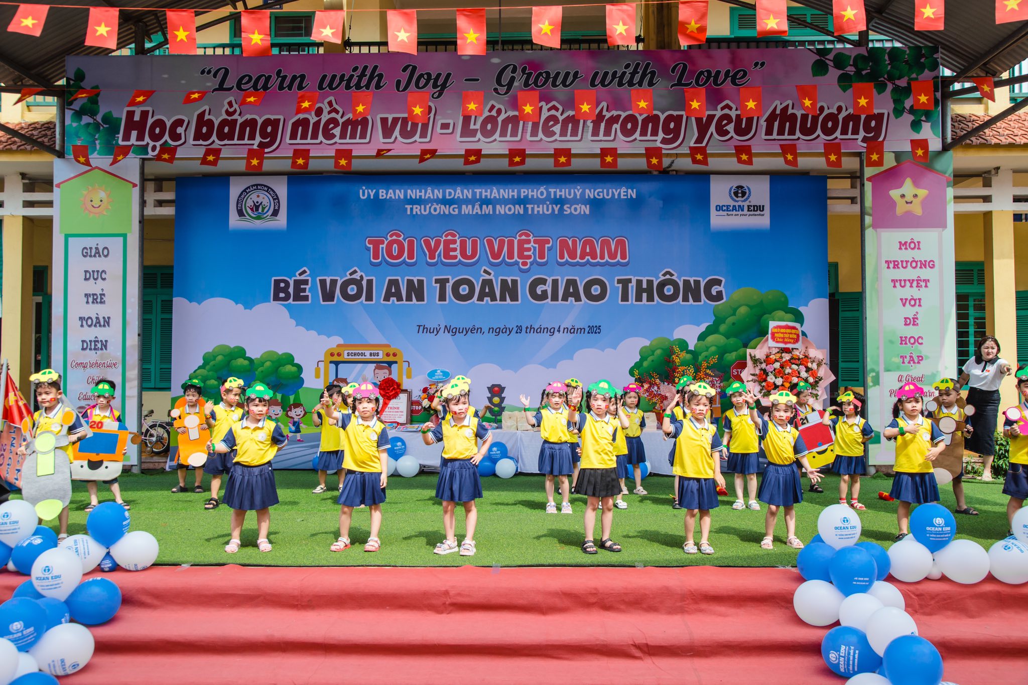 Hòa trong không khí thiêng liêng kỷ niệm 50 năm Ngày Giải phóng miền Nam, thống nhất đất nước (30/4/1975 – 30/4/2025), trường mầm non Thuỷ Sơn hân hoan tổ chức sân chơi bổ ích mang tên “Tôi yêu Việt Nam – Bé với an toàn giao thông” dành cho các bé thân yêu.