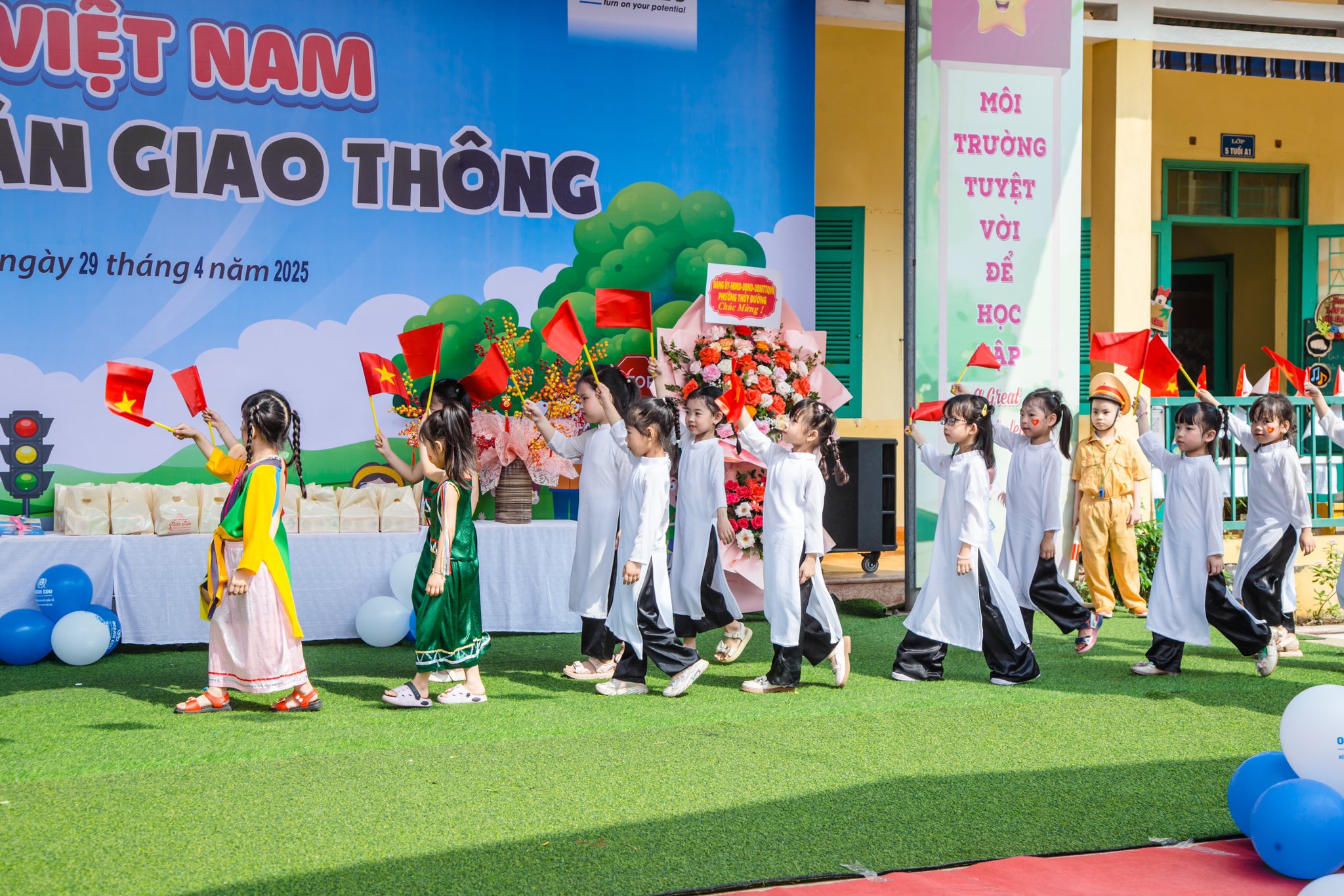 Hoạt động không chỉ giúp các bé hiểu hơn về ý nghĩa lịch sử của ngày 30/4 mà còn rèn luyện kỹ năng tham gia giao thông an toàn – một phần quan trọng trong hành trang vào đời.