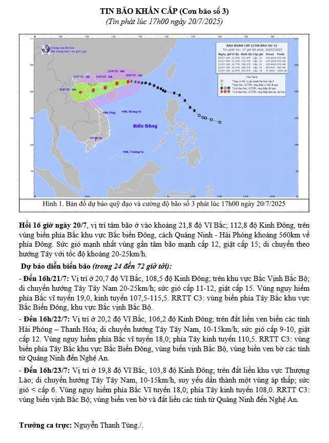 Theo thông tin từ Trung tâm Dự báo Khí tượng Thủy văn Trung ương, cơn bão Wipha (bão số 3) đang tiến gần và được dự báo sẽ ảnh hưởng trực tiếp đến khu vực Hải Phòng với các diễn biến phức tạp như mưa to, gió mạnh và nguy cơ ngập úng.