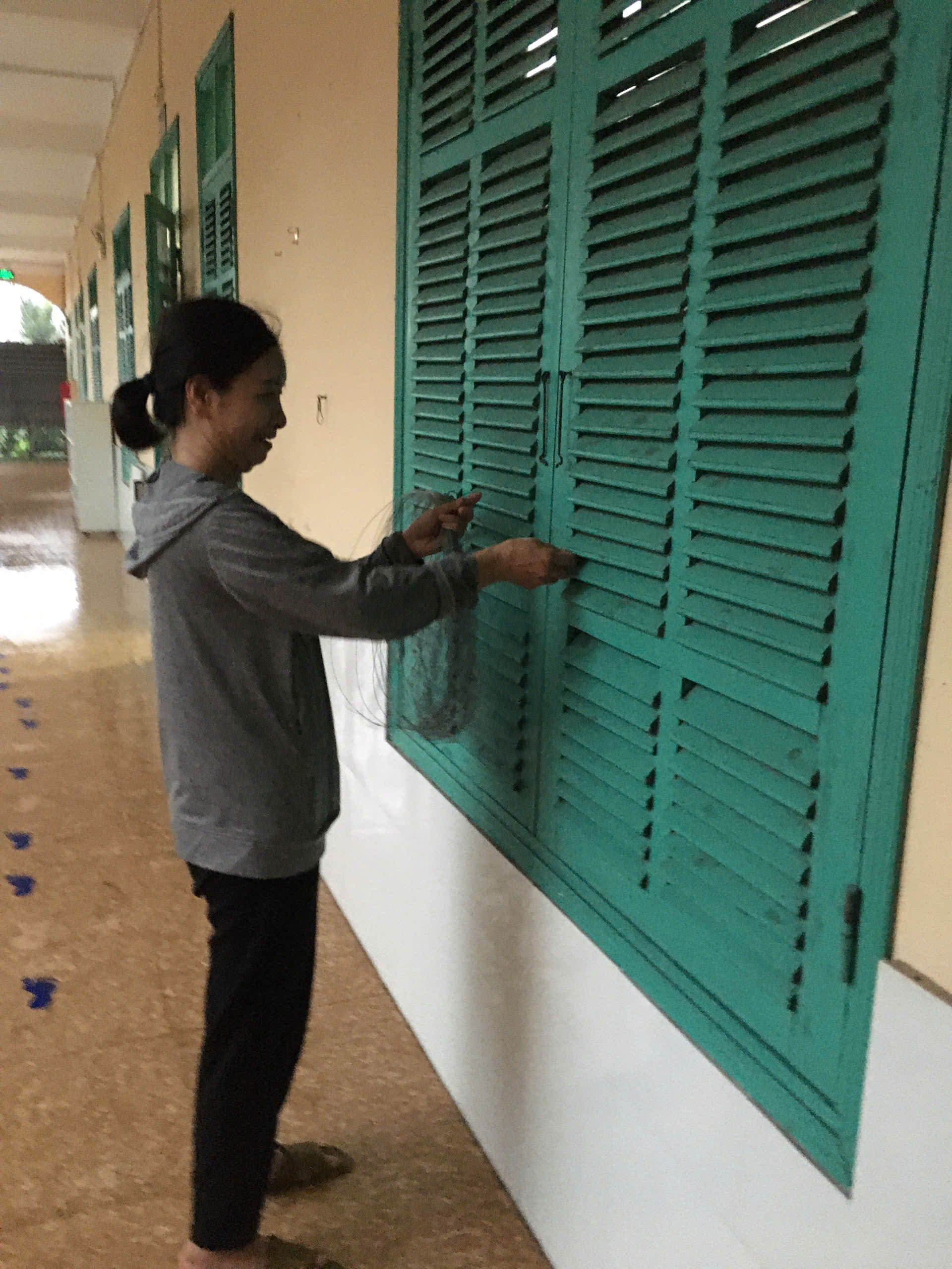 - Chằng chống bảng hiệu, cây xanh trong sân trường...