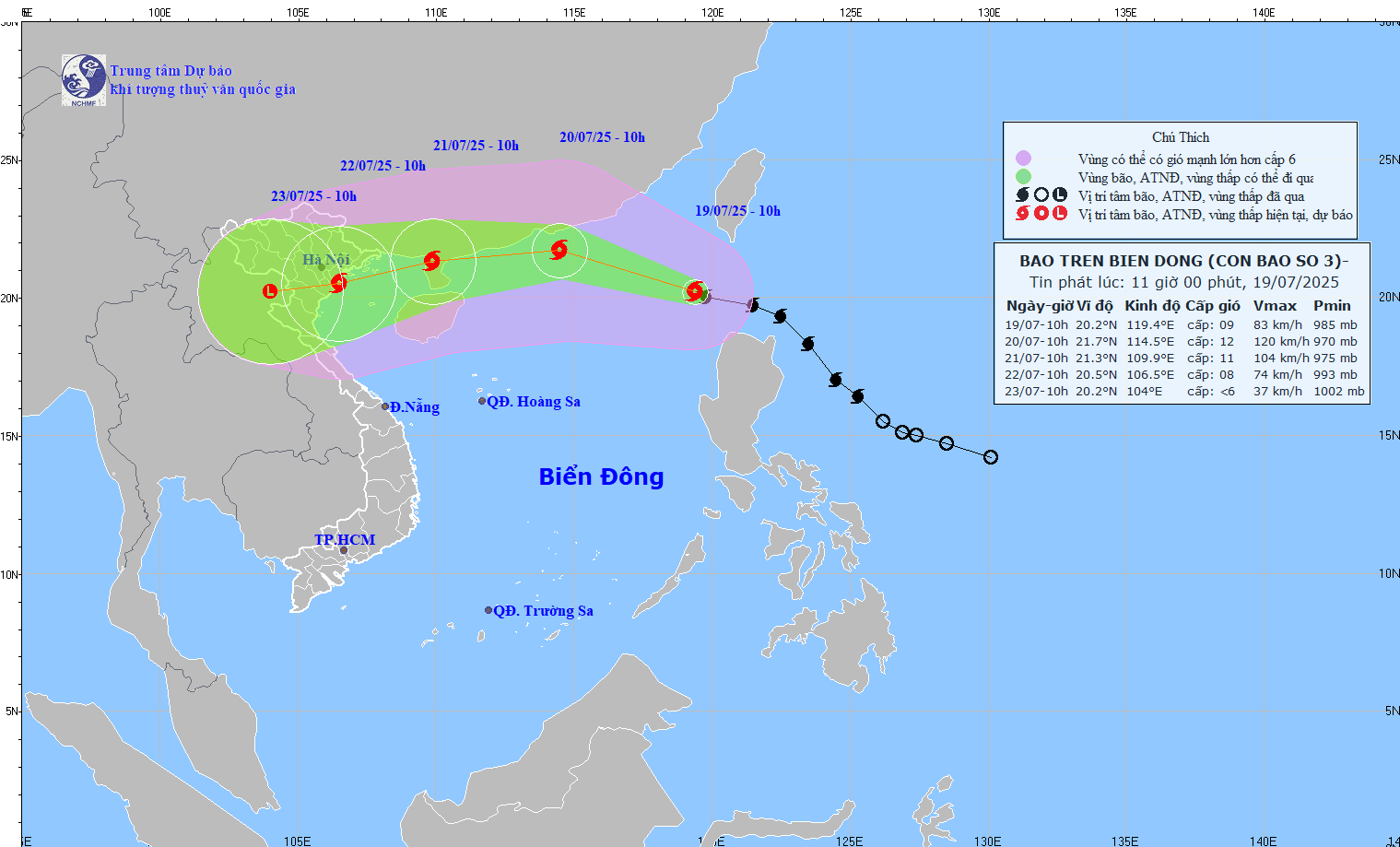 🔷Theo Trung tâm Dự báo Khí tượng Thủy văn Quốc gia, cơn bão có tên quốc tế là Wipha đã đi vào Biển Đông, trở thành cơn bão số 3 trong năm 2025, cường độ đã đạt cấp 10, giật cấp 12; đây là cơn bão rất mạnh, di chuyển nhanh, phạm vi và cường độ ảnh hưởng trên biển và đất liền rất rộng và nguy hiểm.